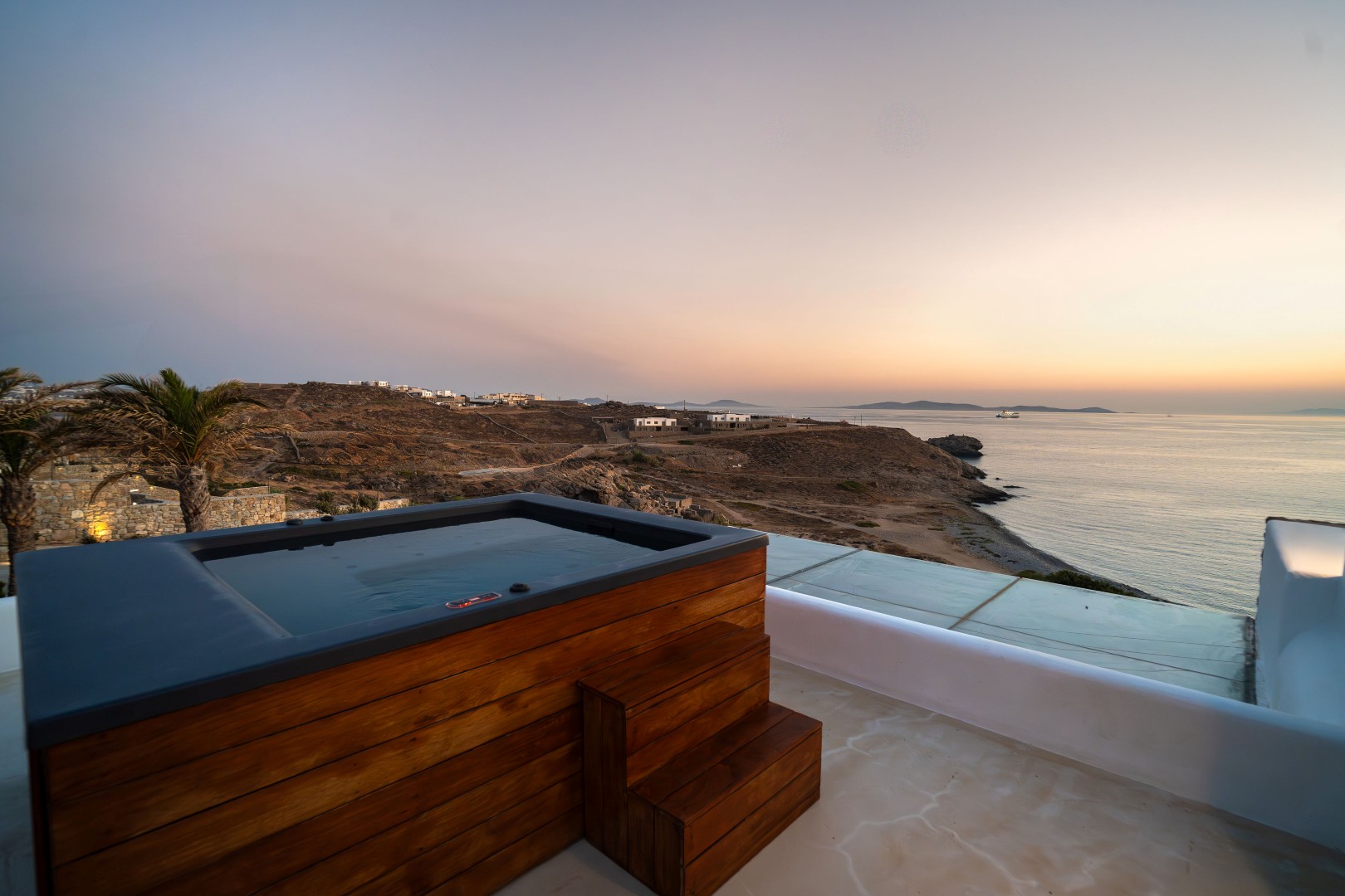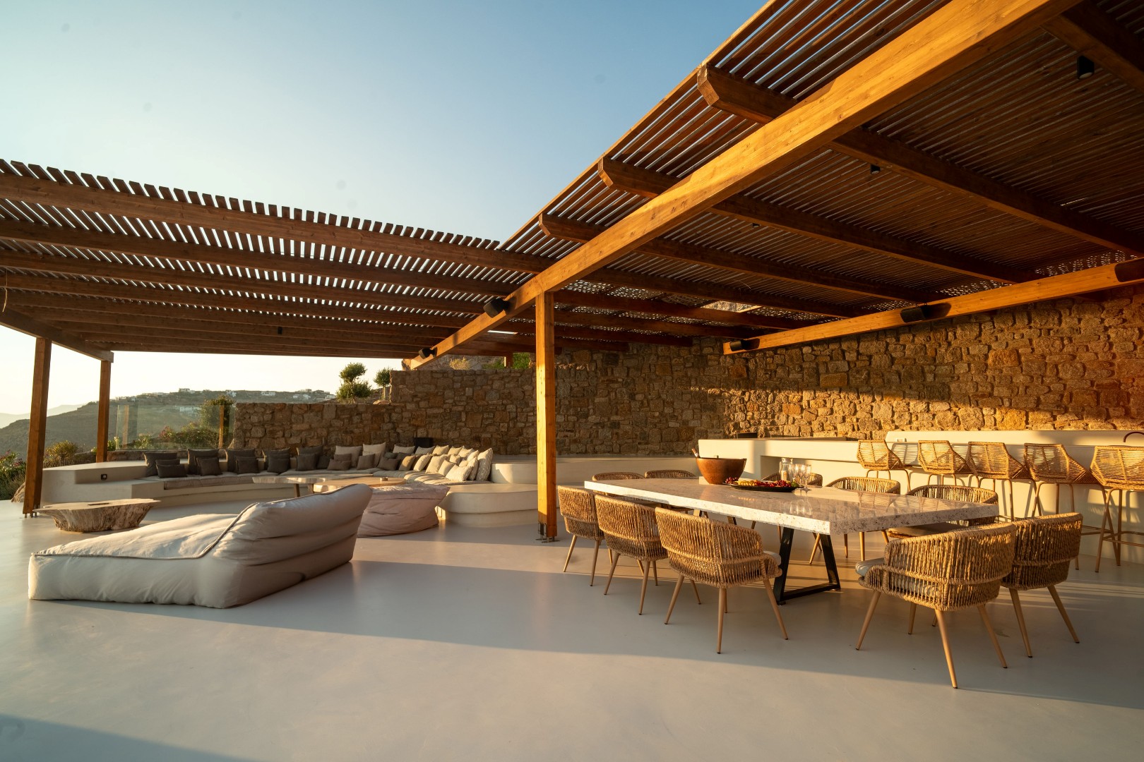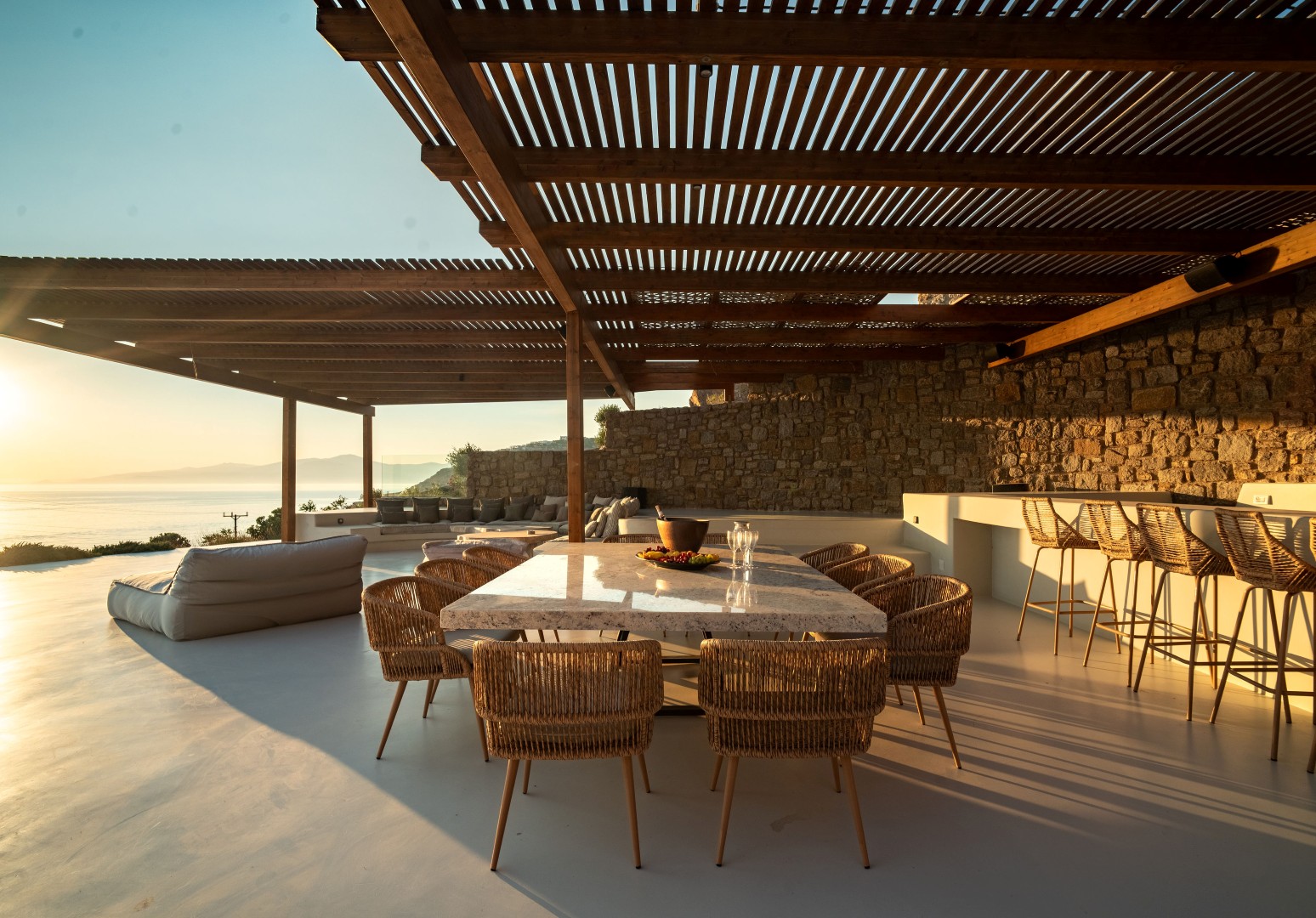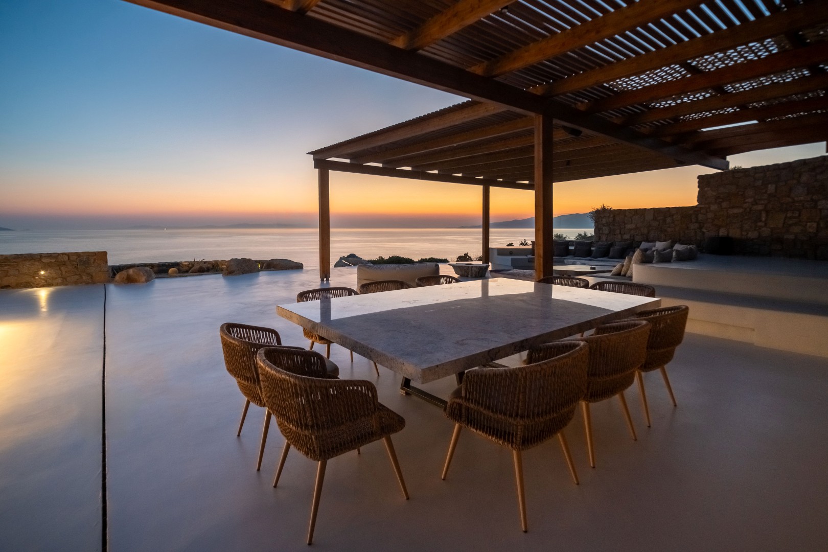 At the same time, the villa’s elevated position makes it perfect for enjoying Mykonos’ famous sunsets. Whether relaxing by the pool or gathering with friends, the sunset views create a truly unforgettable atmosphere.