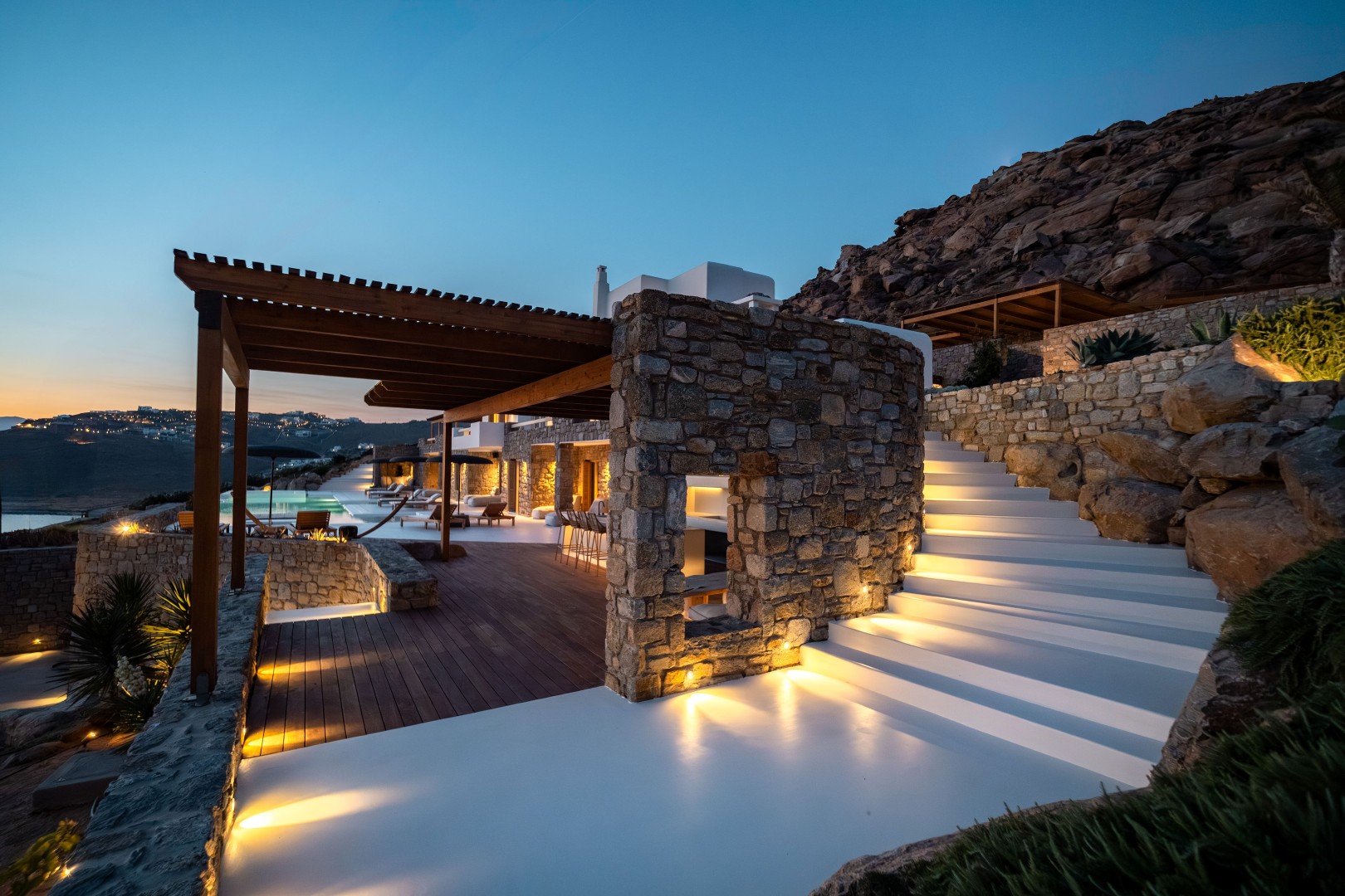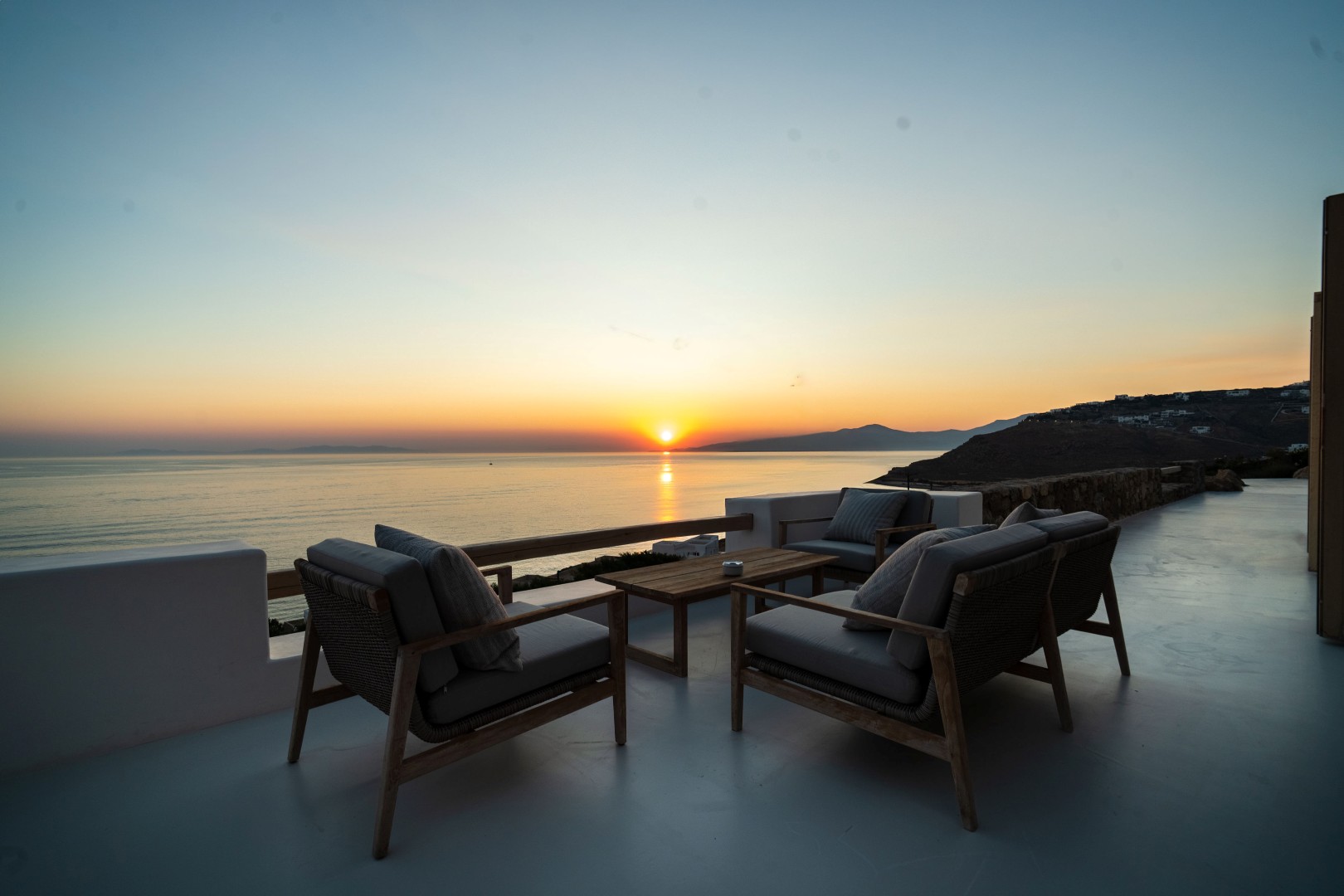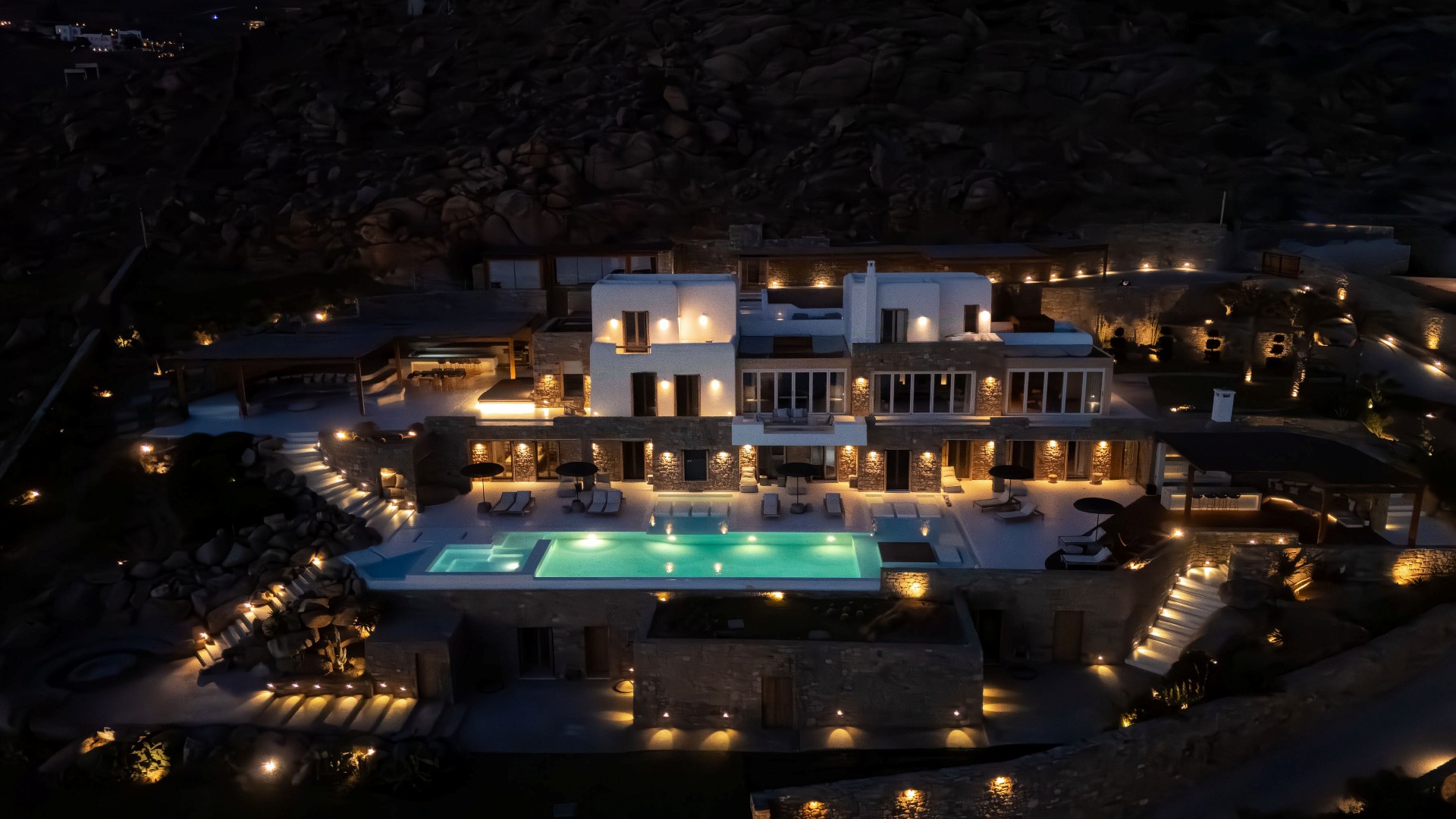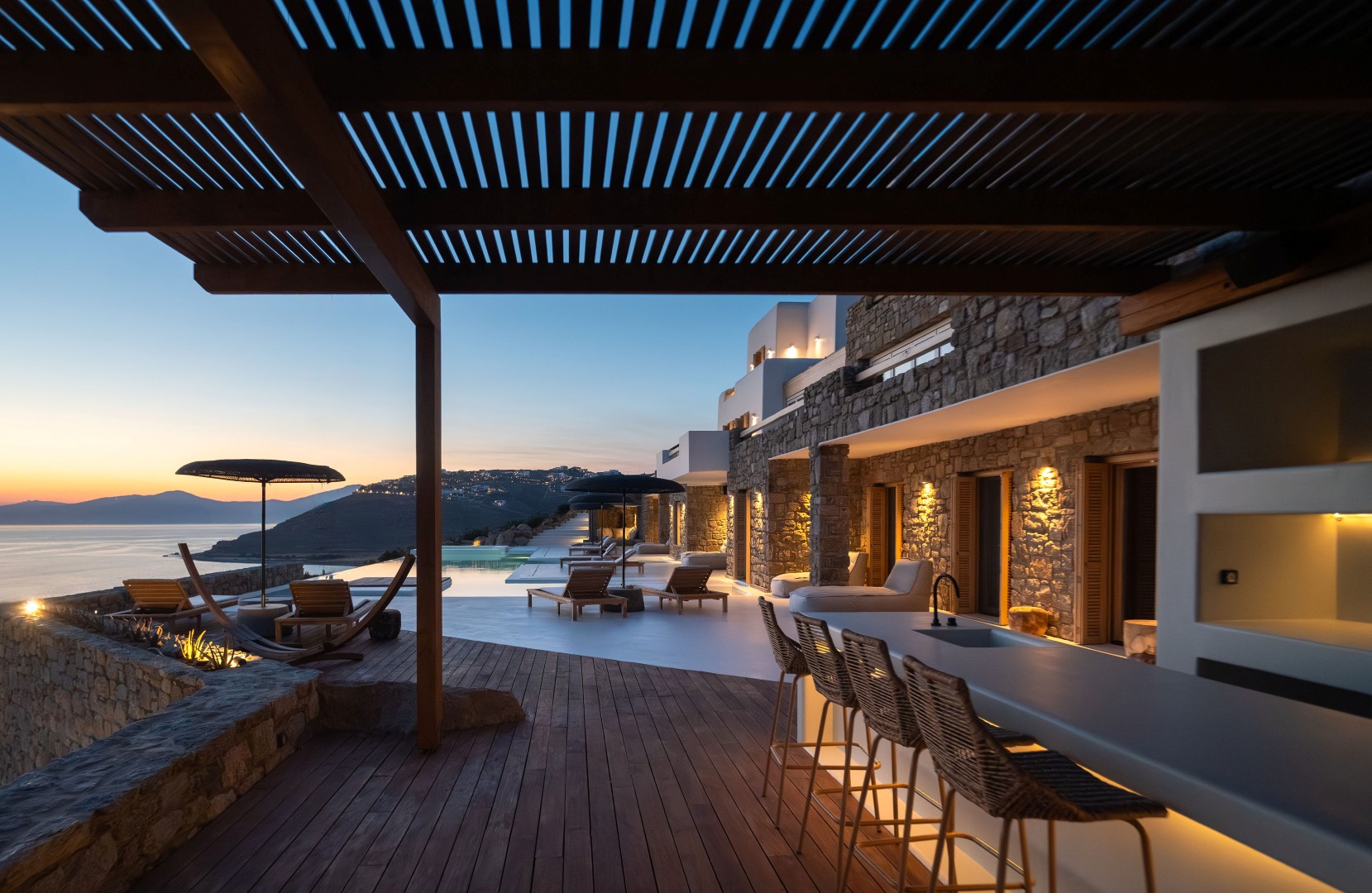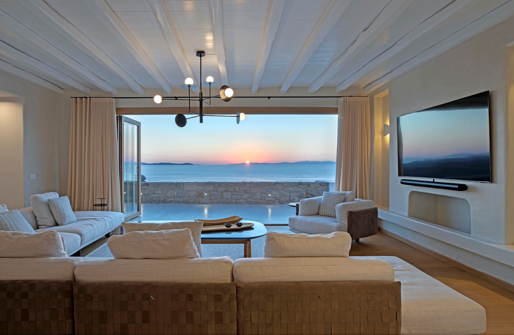 At the same time, the villa’s elevated position makes it perfect for enjoying Mykonos’ famous sunsets. Whether relaxing by the pool or gathering with friends, the sunset views create a truly unforgettable atmosphere.