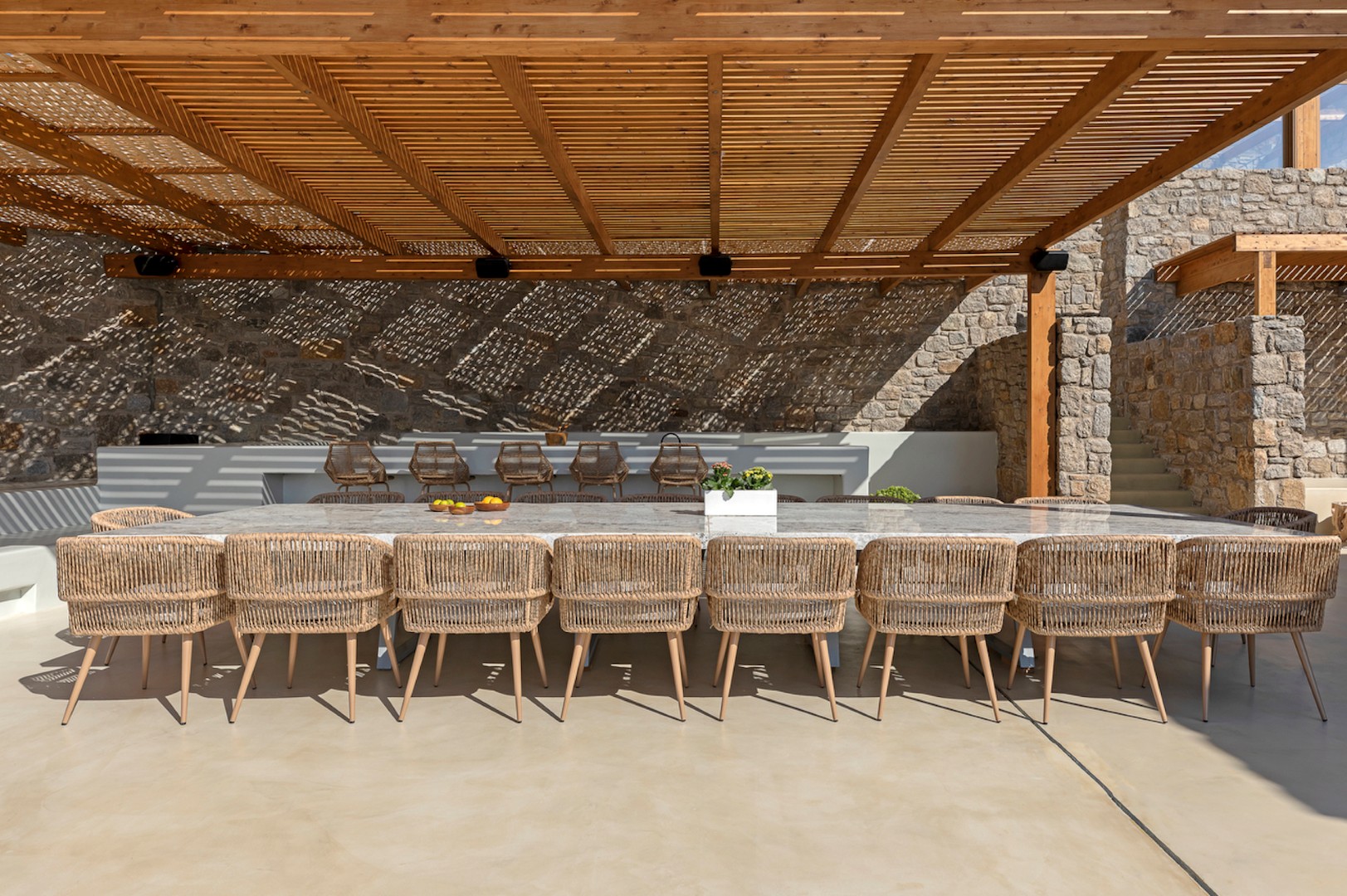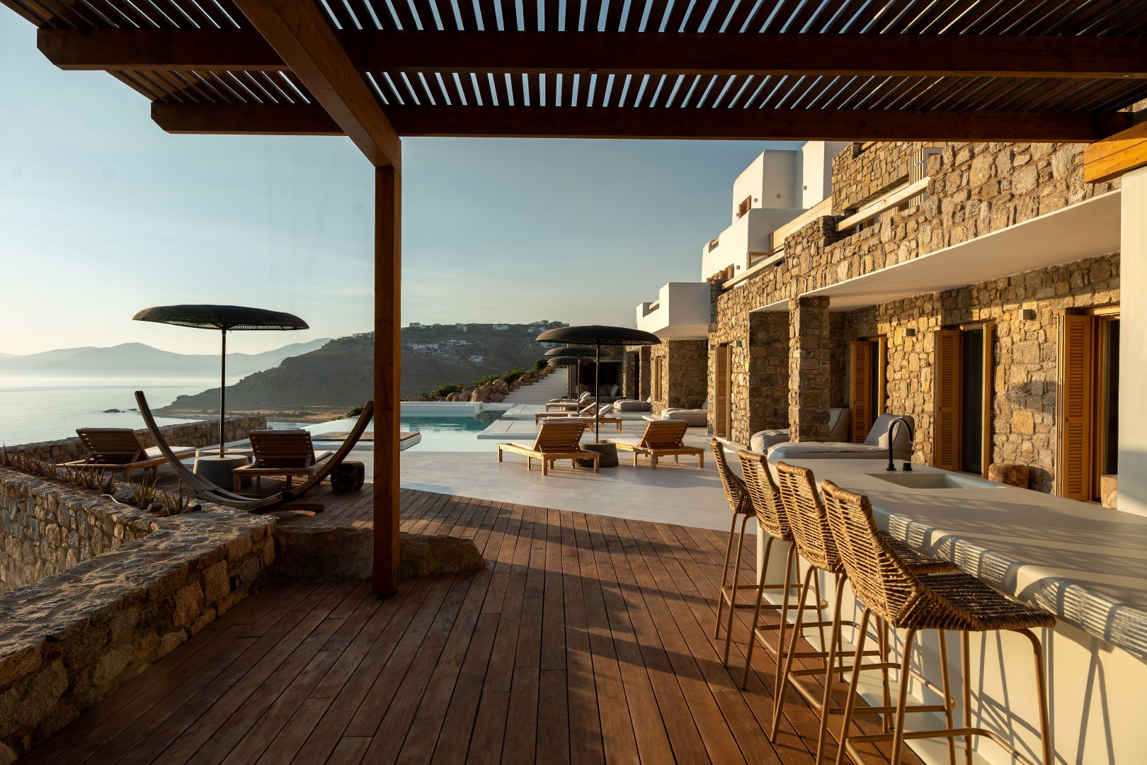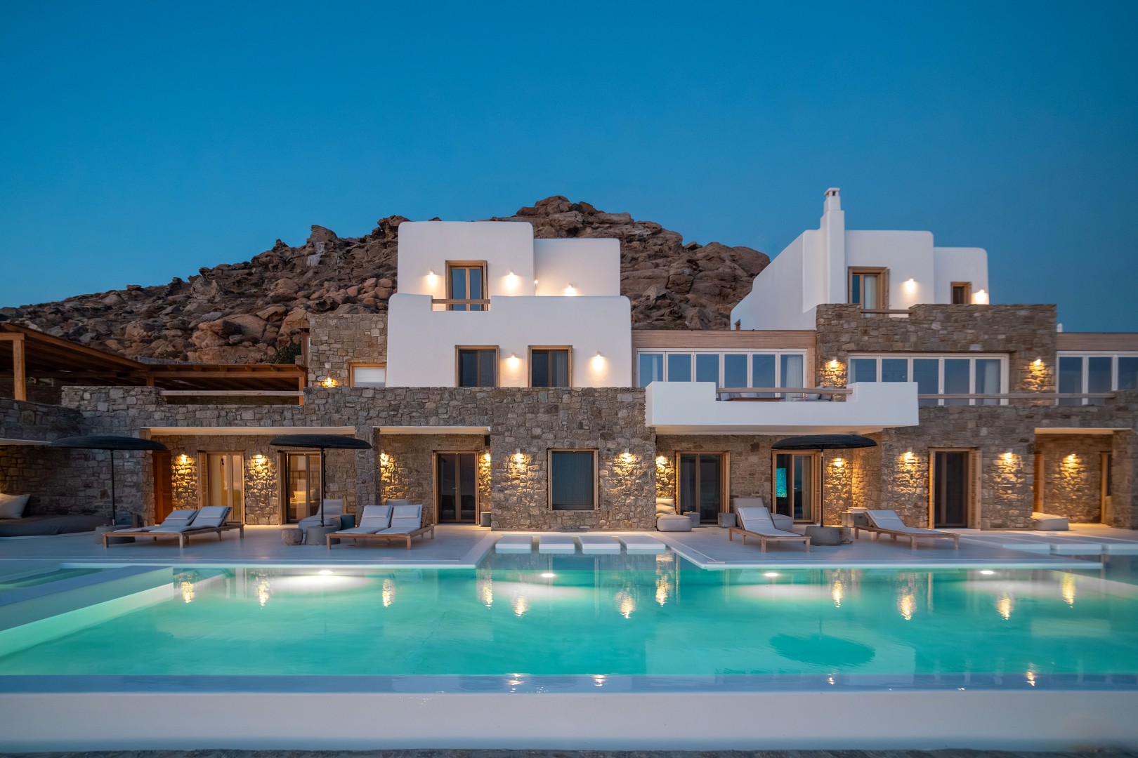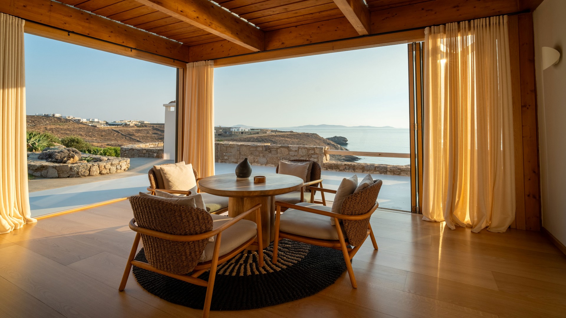 At the same time, the villa’s elevated position makes it perfect for enjoying Mykonos’ famous sunsets. Whether relaxing by the pool or gathering with friends, the sunset views create a truly unforgettable atmosphere.