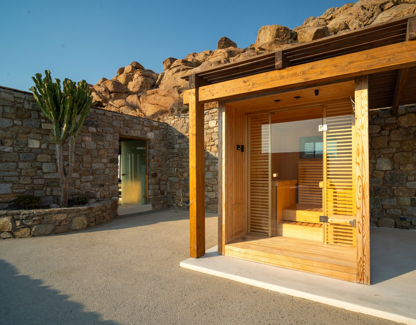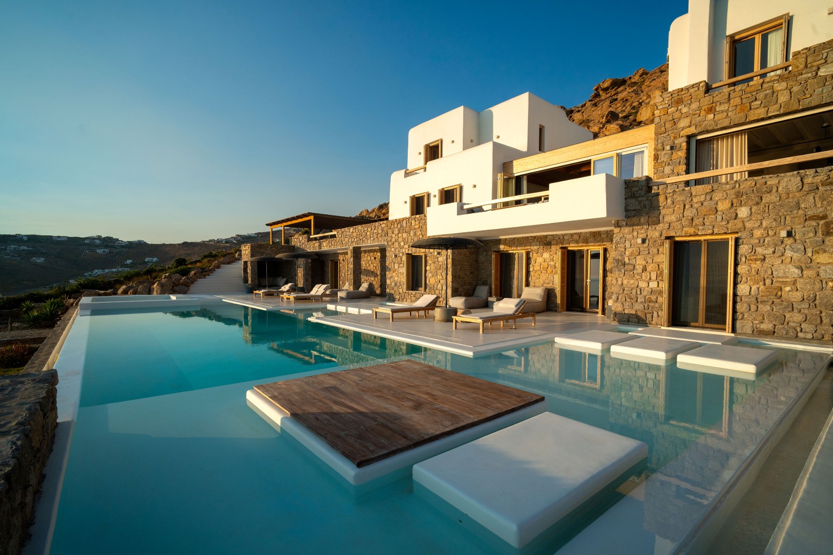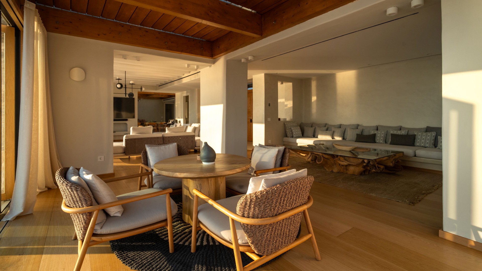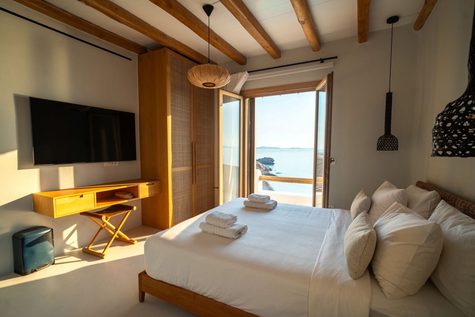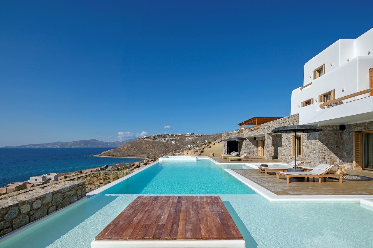 At the same time, the villa’s elevated position makes it perfect for enjoying Mykonos’ famous sunsets. Whether relaxing by the pool or gathering with friends, the sunset views create a truly unforgettable atmosphere.