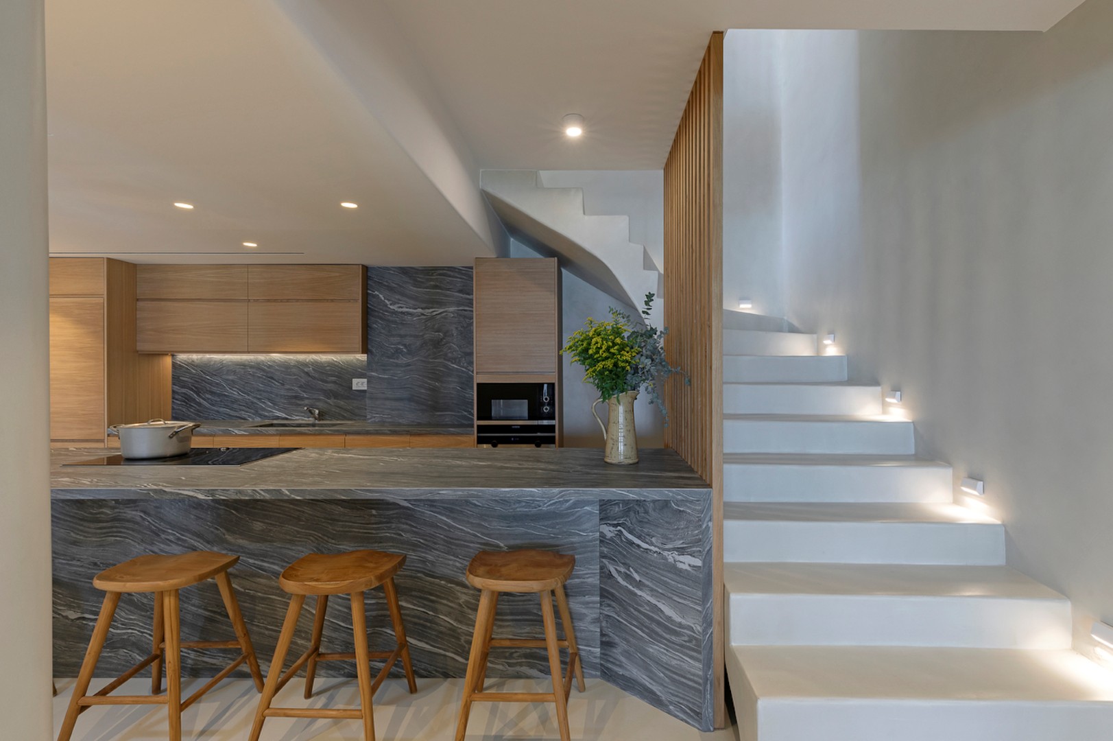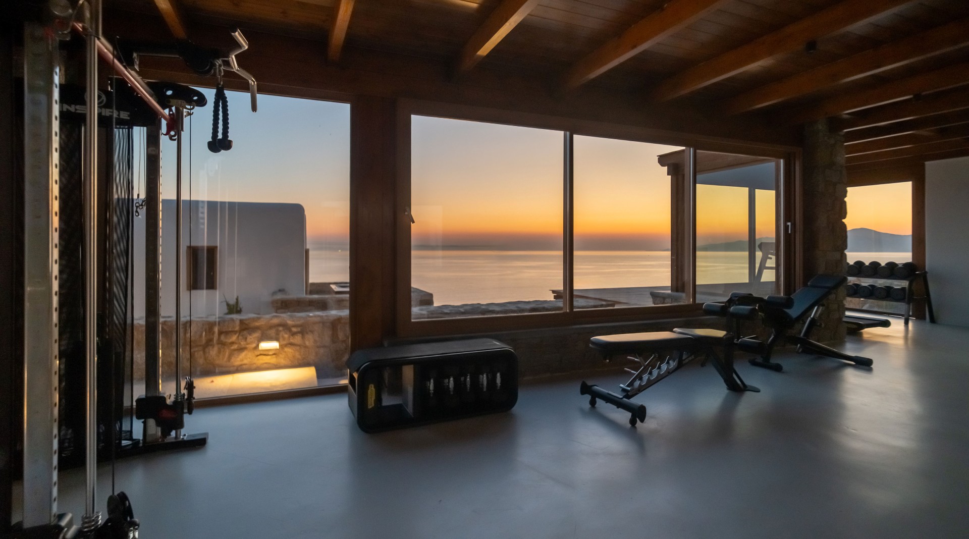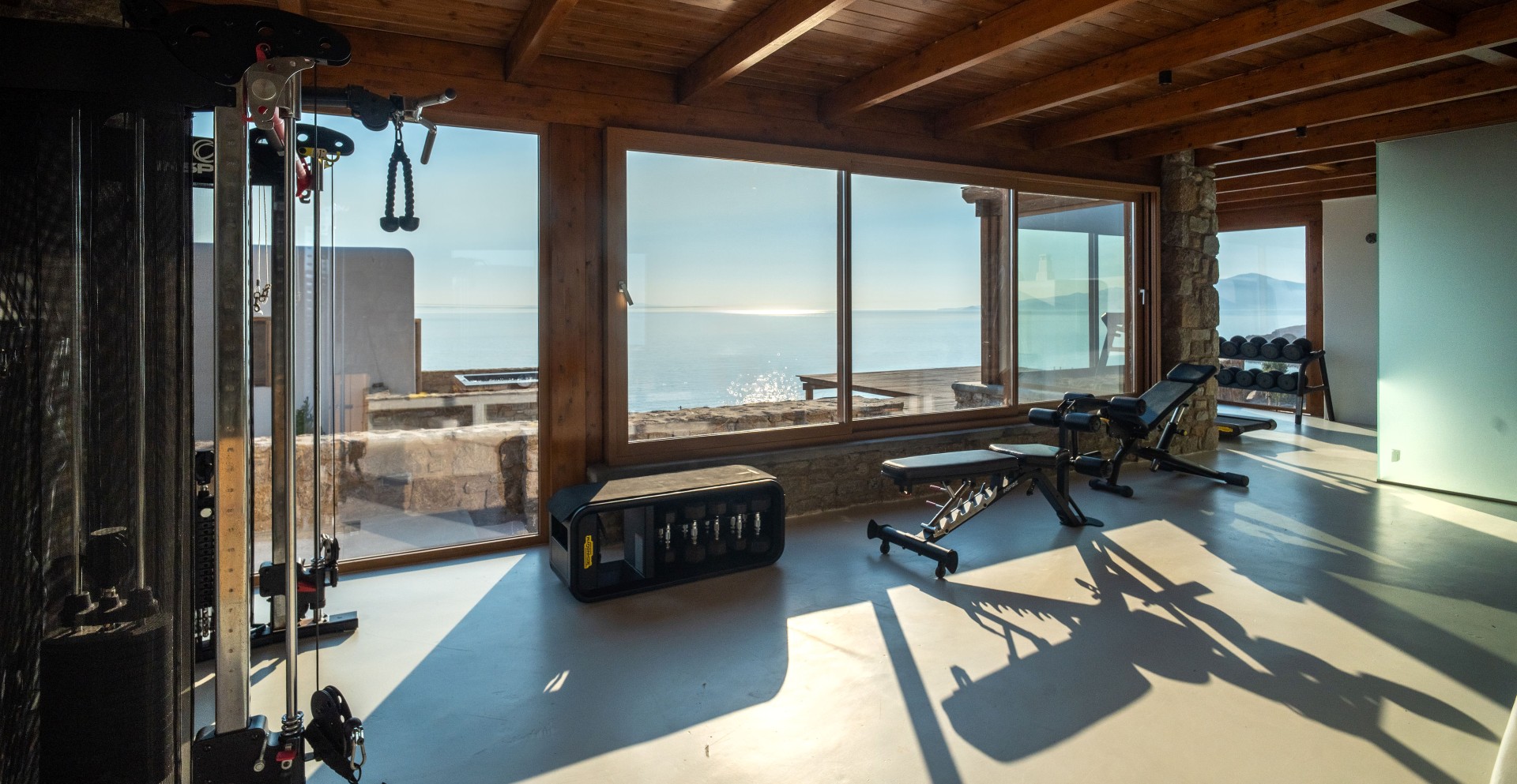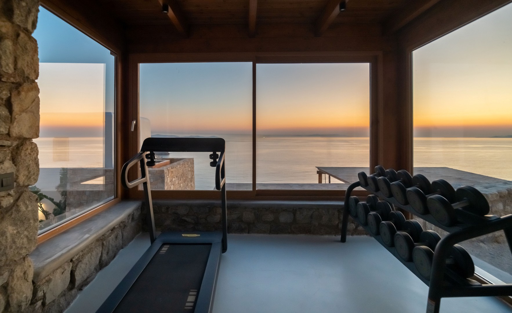 The interiors extend across 850 square meters and offer refined design with high-quality finishes. Moreover, the villa includes a fully equipped kitchen, ideal for private chef services or everyday use. A dedicated gym is also available, allowing guests to maintain their wellness routine during their stay.