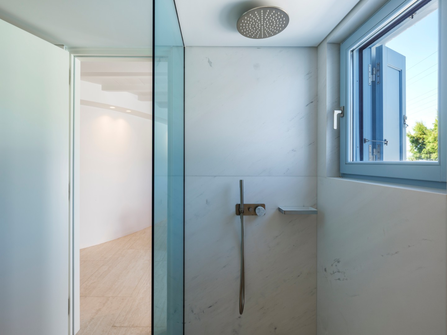 The villa is arranged across two levels and includes three independent guest suites. As a result, it comfortably accommodates up to 15 guests. For this reason, Villa Kir Royal is ideal for families, groups of friends, or special celebrations.
