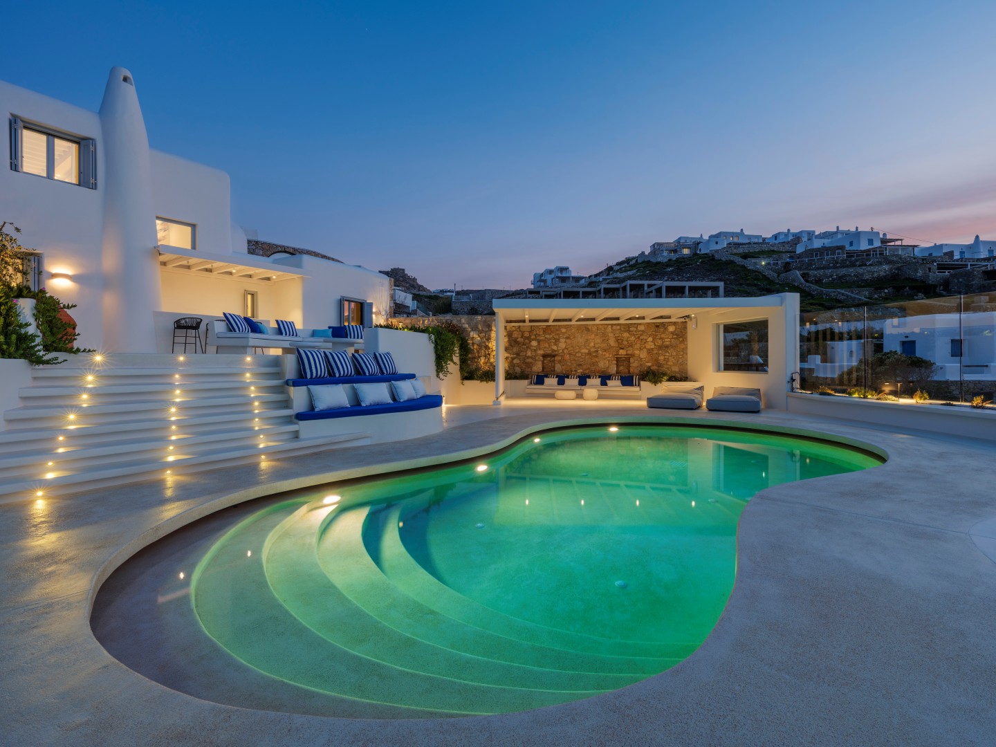 Welcome to Villa Kir Royal, an ultra-luxury private villa in Mykonos. It is ideal for guests who value privacy, comfort, and panoramic sea views. Overall, the estate is elegant, spacious, and designed for unforgettable stays.